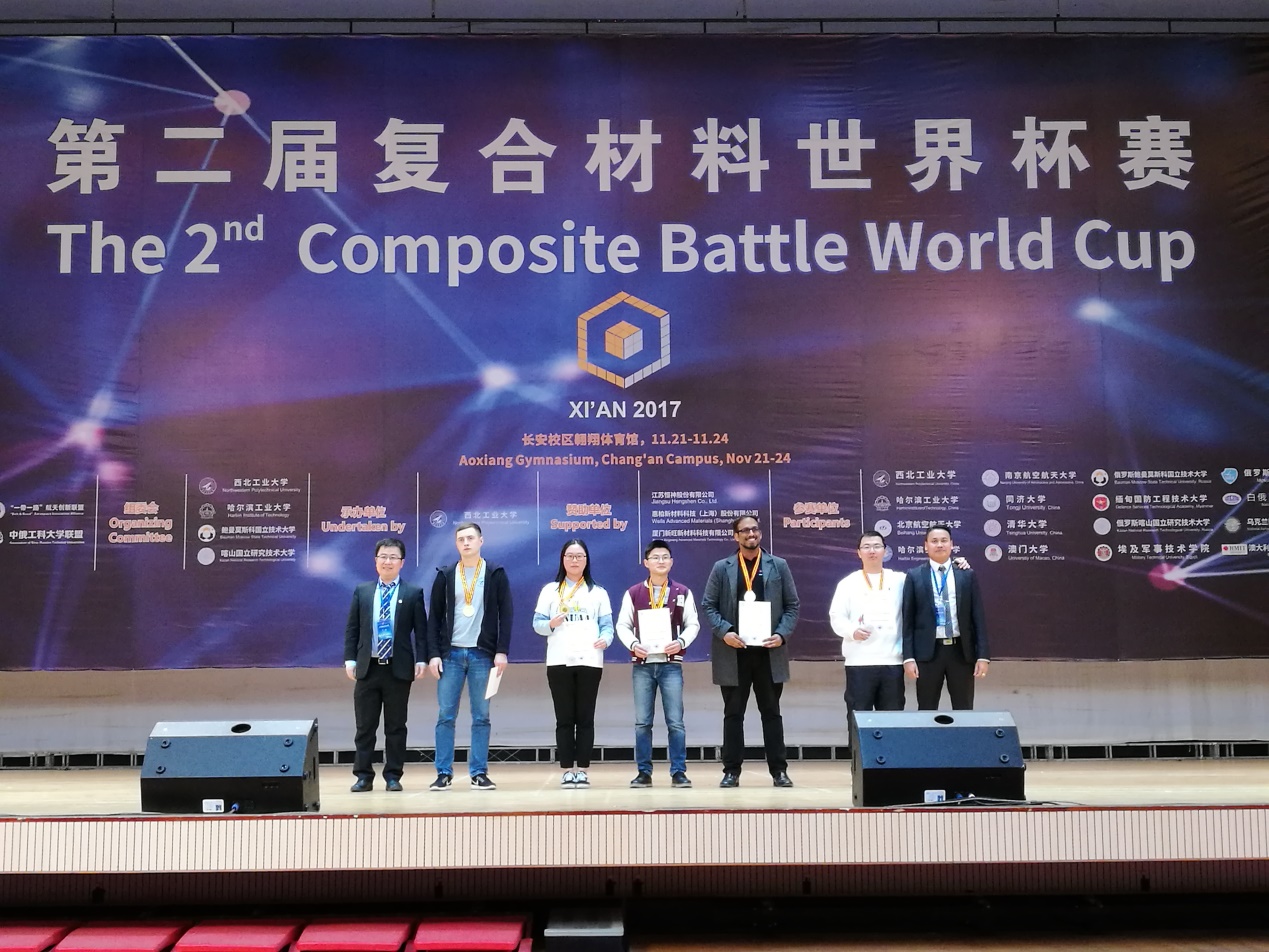 “第二届复合材料世界杯赛”(Composite Battle World Cup,Xi’an 2017)由“一带一路”航天创新联盟和中俄工科大学联盟联合主办。11月21日至11月24日,来自中国、俄罗斯、乌克兰、白俄罗斯、澳大利亚、埃及、缅甸等国家的16支代表队,共计120余名参赛选手和指导教师、专家齐聚西安,集智广思,以赛促学,推动全球复合材料领域创新发展。大赛获得凤凰网、网易、陕西电视台等多家主流媒体的报道。