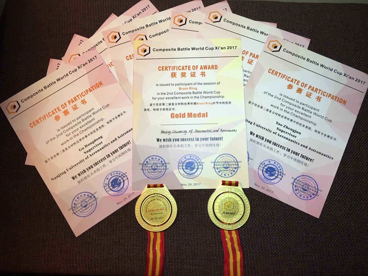 2017年11月20-24日,第二届复合材料世界杯赛开幕式在西北工业大学长安校区翱翔体育馆举行。由我校国际合作交流处组织,花椒直播 2016、2014级研究生以及指导老师姚正军教授、顾冬冬教授和周金堂老师组成的NUAA.VARIer参赛团队参加了比赛并获得优异成绩。